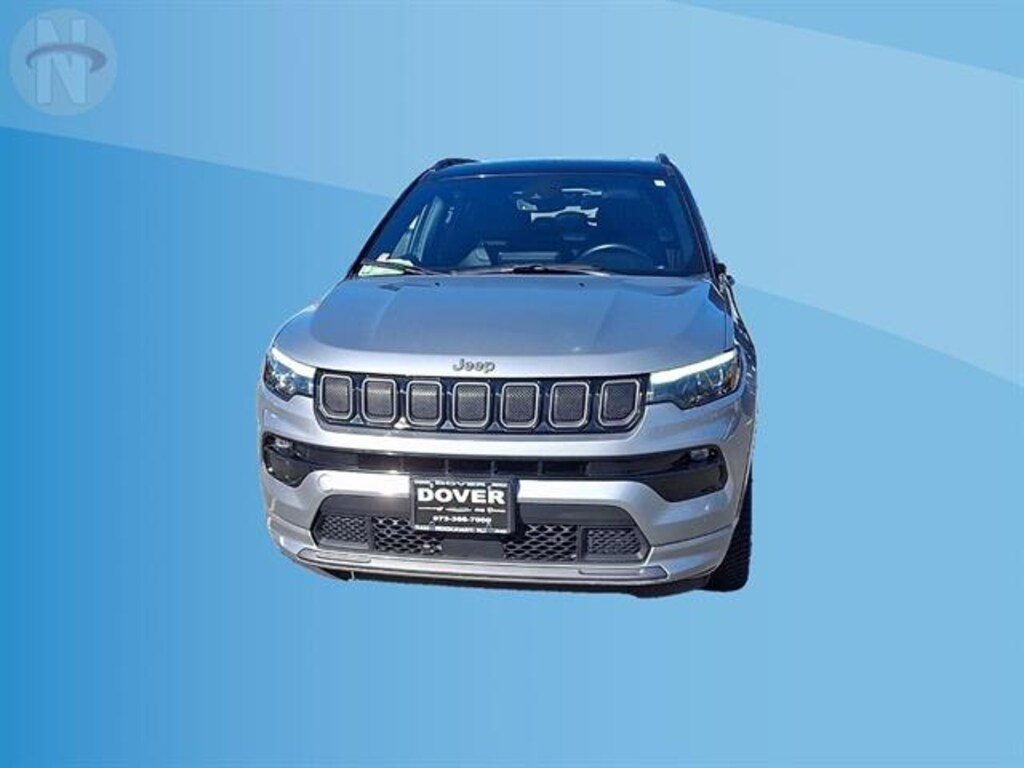 Experience comfort and capability with this Silver 2022 Jeep Compass High Altitude 4x4 SUV. Equipped with a Tigershark 2.4L I4 engine and 9-speed automatic transmission, this Compass delivers smooth performance on and off the road. Enjoy advanced safety with features like front automatic emergency braking, pedestrian detection, lane keeping assist, rear cross traffic alert, and blind spot monitoring. Stay connected on every journey thanks to wireless Apple CarPlay and Android Auto, Uconnect infotainment on a 10.1-inch touchscreen, Amazon Alexa integration, SiriusXM, and onboard Wi-Fi hotspot. Premium touches include leather-trimmed bucket seats, heated front seats and steering wheel, a panoramic power moonroof, adaptive cruise control, and a customizable 10.25-inch digital instrument cluster. Convenience abounds with remote start, power driver seat with lumbar support, auto-dimming rearview mirror, rain-sensing wipers, and a hands-free phone system. This Compass combines luxury, technology, and Jeep's legendary 4x4 capability, making it the ideal SUV for drivers who want style, safety, and versatility.