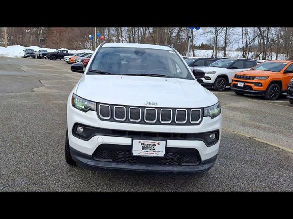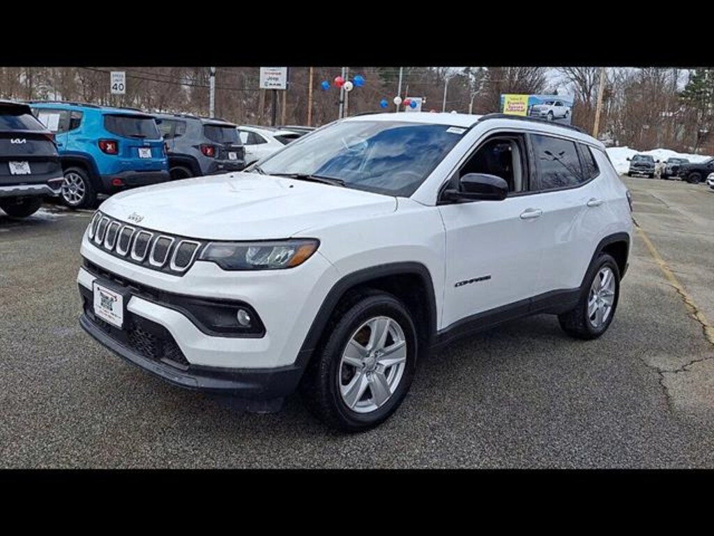 Discover the versatility and style of this 2022 Jeep Compass Latitude 4x4 in classic white. Powered by a Tigershark 2.4L I4 engine and a 9-speed shiftable automatic transmission, this SUV is ready for any adventure. Enjoy advanced features like wireless Apple CarPlay and Android Auto integration, an 8.4-inch Uconnect infotainment touchscreen, and Bluetooth connectivity for seamless entertainment. Safety is a priority with lane keeping assist, blind spot monitoring, rear cross traffic alert, front automatic emergency braking, and pedestrian detection. Convenience features include heated side mirrors, push-button start, premium cloth/vinyl bucket seats, and a spacious interior with split rear seat folding for extra cargo space. Stay connected on the go with a built-in Wi-Fi hotspot and SiriusXM satellite radio. The Jeep Compass blends rugged capability with modern technology, making it the perfect SUV for both city driving and weekend getaways. Visit us today to experience it for yourself!