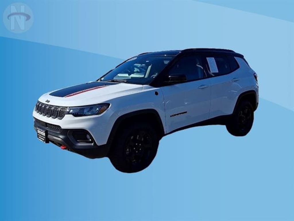 Check out this low-mileage 2023 Jeep Compass Trailhawk 4x4 SUV in classic white, with only 8,940 miles on the odometer! Built for adventure, the Trailhawk features off-road tuned suspension, powertrain and front skid plates, rear tow hooks, and Hill Descent Assist. Enjoy modern tech with a 10.1-inch Uconnect touchscreen, wireless Apple CarPlay and Android Auto, adaptive cruise control, lane keeping assist, rear cross traffic alert, and a rearview camera for added confidence. Premium cloth/leather-trimmed bucket seats, heated side mirrors, and ambient lighting enhance comfort and style. The efficient 2.0L Turbo I4 engine paired with an 8-speed automatic transmission delivers both power and fuel economy. Don't miss your chance to own this versatile, rugged, and well-equipped SUV-perfect for daily driving or your next adventure!