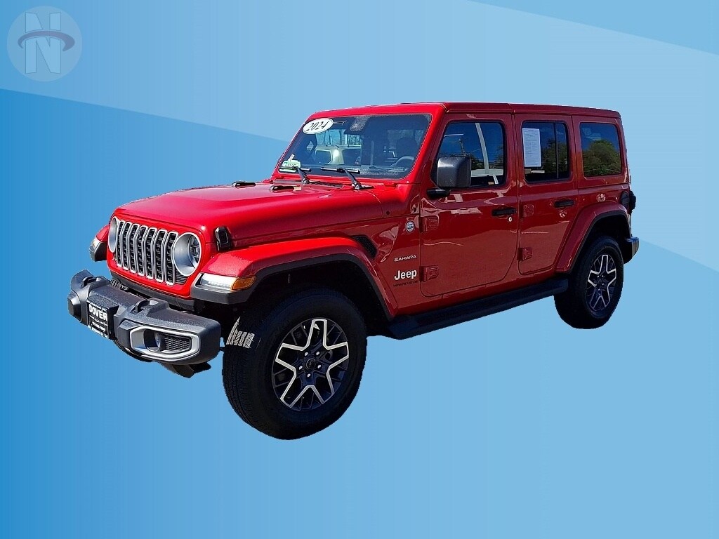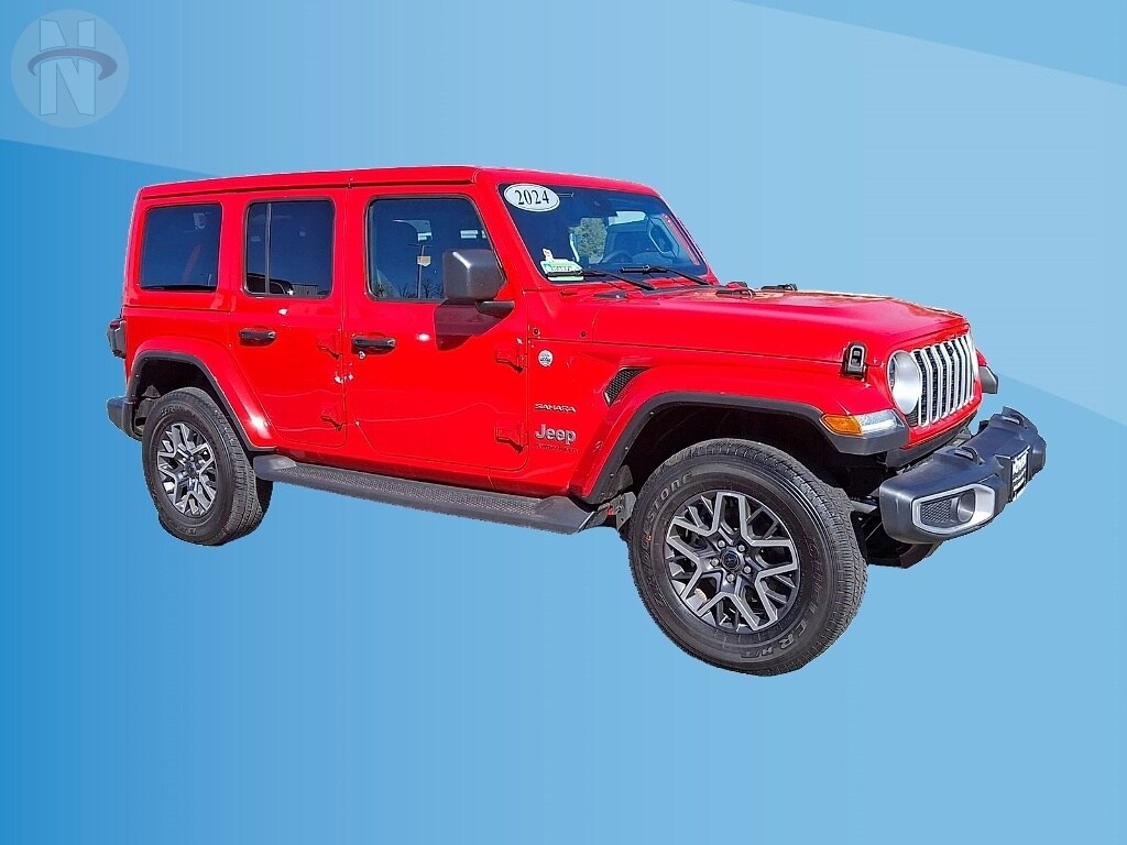 Discover adventure in this stunning Red 2024 Jeep Wrangler Unlimited Sahara 4x4. Built for both on-road comfort and off-road performance, it features a powerful 3.6L V6 engine paired with an 8-speed shiftable automatic transmission and Jeep's legendary 4X4 capability. Enjoy advanced tech like a massive 12.3-inch Uconnect infotainment screen with wireless Apple CarPlay and Android Auto, voice-activated controls, and SiriusXM Guardian smart device compatibility. Safety comes first with Adaptive Cruise Control, Front Automatic Emergency Braking, a rearview camera, and the Safety Group package. The Sahara trim adds stylish LED headlights, heated side mirrors, and side steps for easy entry. Inside, you'll find a leatherette-wrapped heated steering wheel, heated seats, ambient lighting, and ample cargo space with a rubber/vinyl cargo mat. Convenience features include push-button start, remote engine start, proximity entry, and multiple USB-C and USB power outlets. Stay connected on the go with built-in Wi-Fi hotspot. This Wrangler is ready for your next journey-visit us for a test drive today!