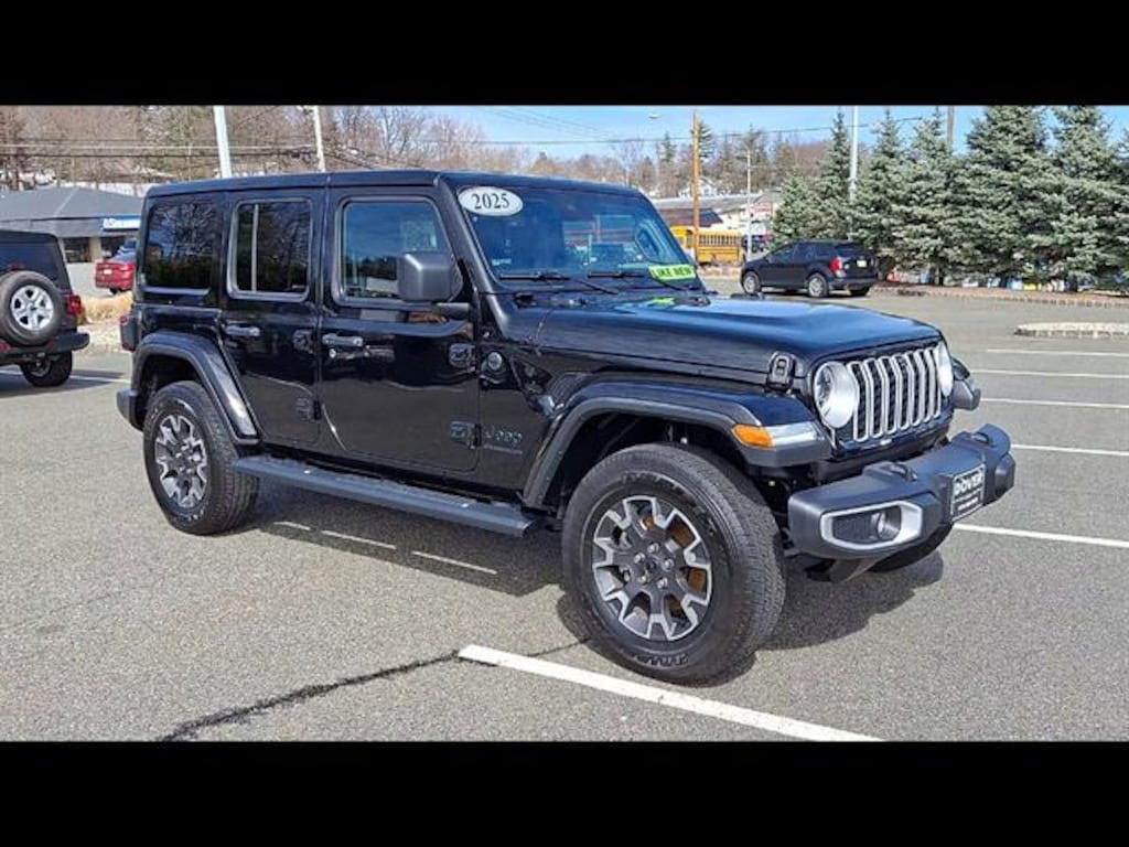 Drive in style and confidence with this Black 2025 Jeep Wrangler Unlimited Sahara 4x4, showing just 3,367 miles! Equipped with the Quick Order Package 24G and Technology Group, this Wrangler offers premium features like the Alpine Premium Audio System, 12.3-inch Uconnect infotainment screen, and wireless Apple CarPlay/Android Auto. Enjoy advanced safety tech including Front Automatic Emergency Braking, Adaptive Cruise Control, and Rearview Camera. The Sahara trim delivers heated front seats, a heated steering wheel, leatherette accents, and body-color hard top for comfort and sophistication. Off-road essentials like Hill Descent Assist, heavy-duty suspension, skid plates, and tow hooks ensure you're ready for any adventure. Stay connected with Jeep Connect app compatibility, Wi-Fi hotspot, and multiple USB outlets. Make every journey exceptional in this low-mileage, feature-packed Wrangler Unlimited Sahara-ready for your next adventure.