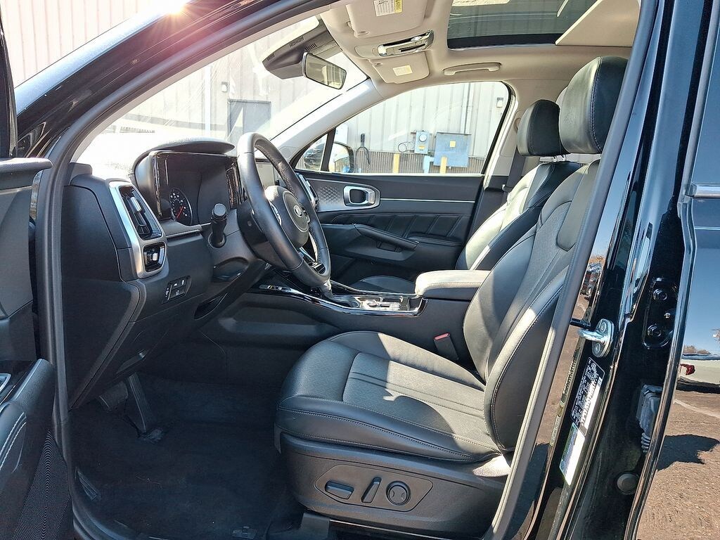 One Owner. AWD. Turbocharged Power.This is not your average midsize SUV. This Kia Sorento SX AWD is powered by a 281-horsepower 2.5L Turbocharged engine paired with a quick-shifting 8-Speed Dual-Clutch Transmission, delivering strong acceleration and refined performance you can feel immediately. Combined with All-Wheel Drive, you get confident traction in all seasons without sacrificing efficiency.Finished in Ebony Black, this SX trim brings aggressive styling with 20" Gloss Black Alloy Wheels, sleek body lines, and a premium, modern stance that stands out on the road.Premium Interior & TechnologyInside, the Sorento SX is designed to impress:Navigation SystemApple CarPlay & Android AutoPower MoonroofPower LiftgateSmart Key with Push Button Start & Remote StartPremium Leatherette SeatingHeated Front SeatsDual-Zone Automatic Climate ControlRear Air Conditioning (Perfect for 3rd Row Passengers)With 3rd-row split-bench seating, this Sorento comfortably fits the whole family while maintaining flexible cargo space when needed.Performance Meets PracticalityThe independent suspension, Electronic Stability Control, ABS, and advanced airbag system work together to provide safety and control. The turbocharged engine gives this SUV a sportier feel than most competitors in its class, making it ideal for drivers who want utility without giving up excitement.21/28 City/Highway MPG impressive efficiency for a 281HP AWD SUV.CARFAX One-Owner.At Nielsen Kia of Newton, we are committed to delivering a seamless and professional buying experience. Our dealership has repeatedly earned the prestigious Kia Customer First Award for Excellence, recognizing top-tier customer satisfaction across every department. This vehicle is located at our Newton Kia location. Call 973-300-0003 today to schedule your test drive.A Turbocharged, AWD, SX-trim Sorento with 281HP and 20 wheels will not sit long especially in this condition.