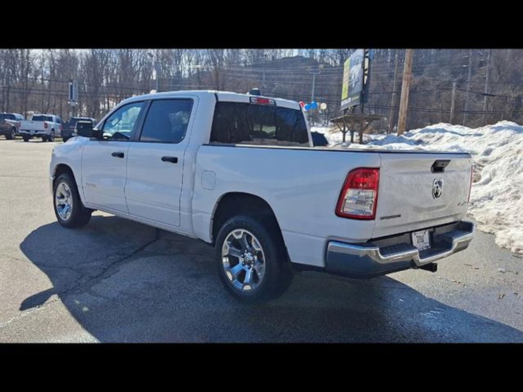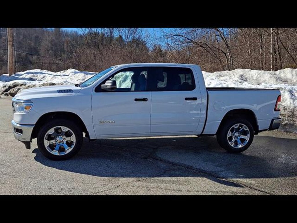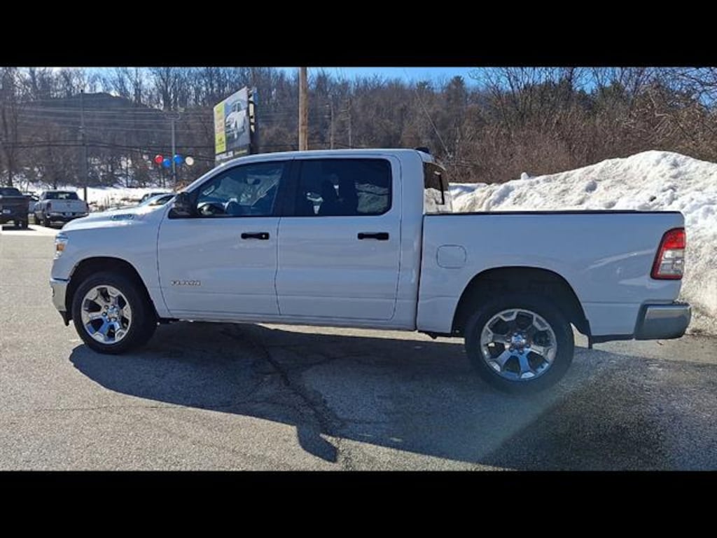 Check out this 2023 Ram 1500 Big Horn Crew Cab 4x4 in striking white! Powered by a Pentastar eTorque 3.6L V6 engine paired with an 8-speed automatic transmission, this truck is ready for work or play. Stay connected with UConnect 5 Nav and an 8.4-inch touchscreen display, Bluetooth, and voice-operated features. Enjoy comfort and convenience with deluxe cloth bucket seats, front and rear rubber floor mats, and a power locking tailgate. Safety is a priority with the Level 1 Safety Group, rearview camera, front/rear side curtain airbags, and emergency braking preparation. Tackle any job with the trailer brake controller, Class III trailer hitch, 7-pin wiring, and anti-spin rear differential. The aluminum alloy wheels, chrome accents, and approach lamps add style, while features like remote start, push-button start, and under-seat storage enhance daily usability. Don't miss out on this well-equipped, versatile Ram 1500 Big Horn-perfect for your next adventure or tough job!