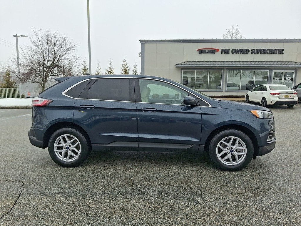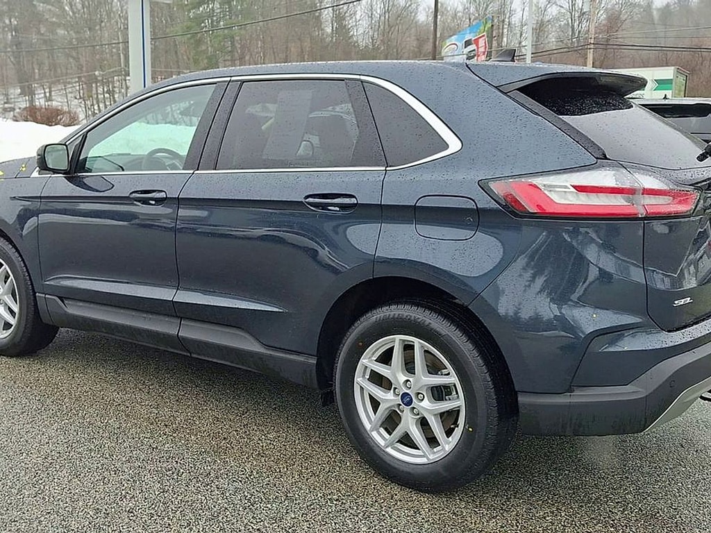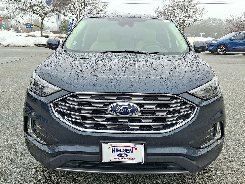Experience the versatility and style of this Blue 2022 Ford Edge SEL AWD Crossover. Equipped with the powerful and efficient EcoBoost 2.0L Turbo I4 engine paired to an 8-speed shiftable automatic transmission, this Edge is ready for any road. Enjoy superior tech with a 12-inch touchscreen infotainment system, Wireless Apple CarPlay & Android Auto, FordPass Connect with Wi-Fi hotspot, and SYNC for seamless connectivity. Drive confidently with advanced safety features like Front & Pedestrian Automatic Emergency Braking, Lane Keeping Assist, Blind Spot Monitoring, and Rear Cross Traffic Alert. Comfort is key with heated front seats, a power-adjustable driver's seat with lumbar support, dual-zone automatic climate control, and a leather-wrapped steering wheel. Additional conveniences include a rearview camera with washer, remote start, proximity entry, and ample cargo space with split-folding rear seats. The Edge SEL's bold blue exterior, chrome accents, LED headlights, and 18-inch alloy wheels complete the package. Visit us today and upgrade your drive with this well-equipped, all-wheel-drive Ford Edge!