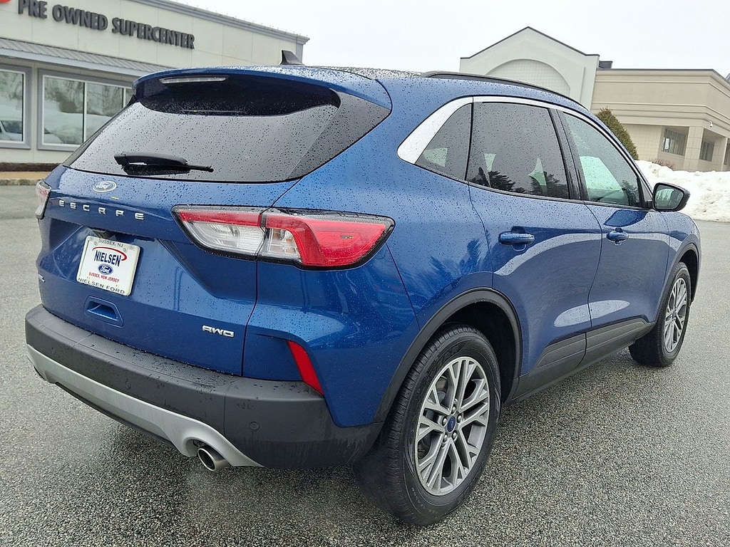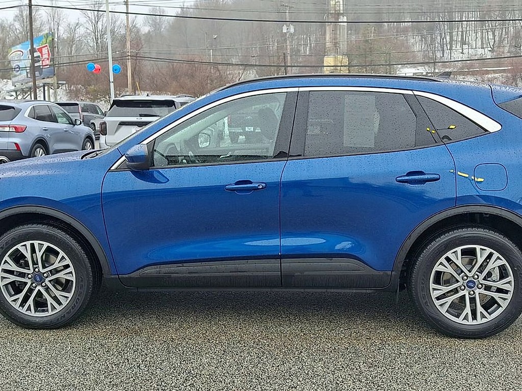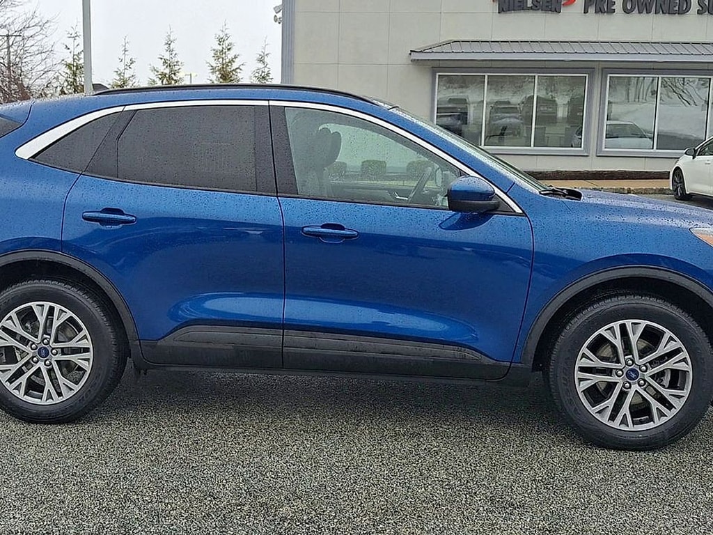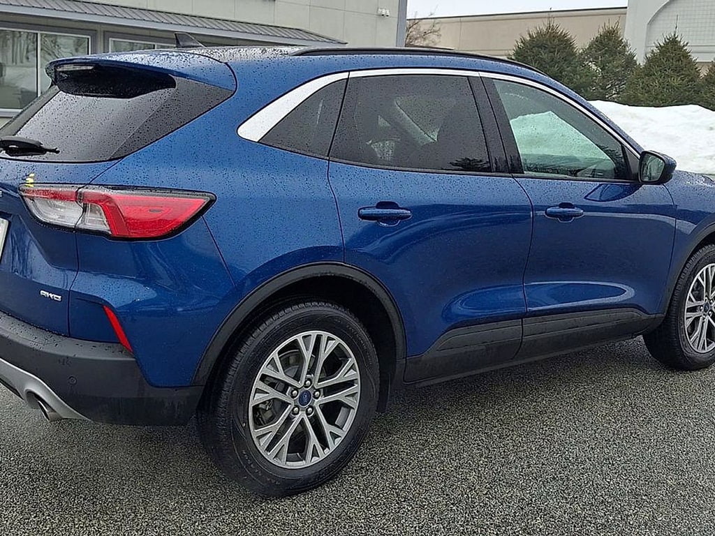 Experience the perfect blend of style, comfort, and advanced technology with this Blue 2022 Ford Escape AWD SEL. Equipped with All-Wheel Drive and a turbocharged EcoBoost 1.5L engine paired to an 8-speed shiftable automatic transmission, this SUV is ready for any adventure. Enjoy premium features including heated front seats, a heated leatherette steering wheel, dual-zone automatic climate control, and a power liftgate for added convenience. Stay connected with Apple CarPlay, Android Auto, Bluetooth, SiriusXM satellite radio, and SYNC infotainment on an 8-inch touchscreen. Safety comes standard with Lane Keeping Assist, Blind Spot Monitoring, Rear Cross Traffic Alert, Front Automatic Emergency Braking, Pedestrian Detection, and a rearview camera. The Escape also features FordPass Connect with smart device integration, push-button start, remote engine start, and stylish black roof rails. With comfortable seating, split-folding rear seats, ample cargo space, and modern driver aids, this Escape SEL is the versatile SUV you've been looking for. Schedule your test drive today!