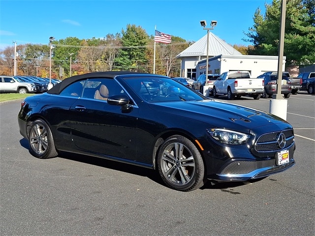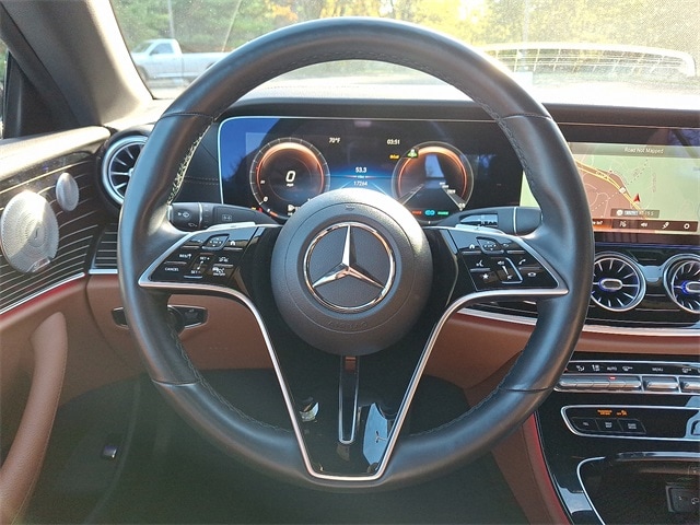 Driver Assistance Package (Active Brake Assist w/Cross-Traffic Function, Active Distance Assist DISTRONIC®, Active Lane Change Assist, Active Speed Limit Assist, Active Steering Assist, PRE-SAFE® PLUS Rear Collision Protection, and Route-Based Speed Adaptation), Exterior Lighting Package (LED Intelligent Light System), 4MATIC®, 13 Speakers, 4-Way Lumbar Support, 4-Wheel Disc Brakes, ABS brakes, Air Conditioning, Alloy wheels, AM/FM radio: SiriusXM, Android Auto®, Anti-whiplash front head restraints, Apple CarPlay®, Apple CarPlay®/Android Auto®, Auto High-beam Headlights, Auto tilt-away steering wheel, Auto-dimming door mirrors, Auto-dimming Rear-View mirror, Automatic temperature control, Black Headliner, Black SoftTop, Brake assist, Bumpers: body-color, Burmester® Surround Sound System, Center Console in Black Piano Lacquer, Center Console in Light Brown Sen Wood, Convertible roof lining, Convertible roof wind blocker, Delay-off headlights, Driver door bin, Driver vanity mirror, Dual front impact airbags, Dual front side impact airbags, Electronic Stability Control, Emergency communication system, Extended Mobility Tires, Exterior Parking Camera Rear, Four wheel independent suspension, Front anti-roll bar, Front Bucket Seats, Front Center Armrest, Front dual zone A/C, Front reading lights, Fully automatic headlights, Garage door transmitter: HomeLink, Genuine wood console insert, Genuine wood dashboard insert, Genuine wood door panel insert, Glass rear window, Head restraints memory, Heated door mirrors, Heated Front Seats, Heated front seats, Heated Steering Wheel, Illuminated entry, Integrated roll-over protection, Knee airbag, Leather Shift Knob, Leather Upholstery, Low tire pressure warning, Memory seat, Navigation system: MBUX, Occupant sensing airbag, Outside temperature display, Overhead airbag, Overhead console, Panic alarm, Passenger door bin, Passenger vanity mirror, Power adjustable front head restraints, Power convertible roof, Power door mirrors, Power driver seat, Power Front Seats w/3-Position Memory, Power passenger seat, Power steering, Power windows, Premium audio system: MBUX, Radio data system, Radio: MBUX Infotainment System w/Navigation, Rain sensing wipers, Rear anti-roll bar, Rear side impact airbag, Rear window defroster, Remote keyless entry, Security system, SiriusXM Radio, Smartphone Integration, Speed control, Speed-sensing steering, Split folding rear seat, Steering wheel memory, Steering wheel mounted audio controls, Tachometer, Telescoping steering wheel, Tilt steering wheel, Traction control, Trip computer, Turn signal indicator mirrors, Variably intermittent wipers, Weather band radio, and Wheels: 18" x 8J 5-Spoke.